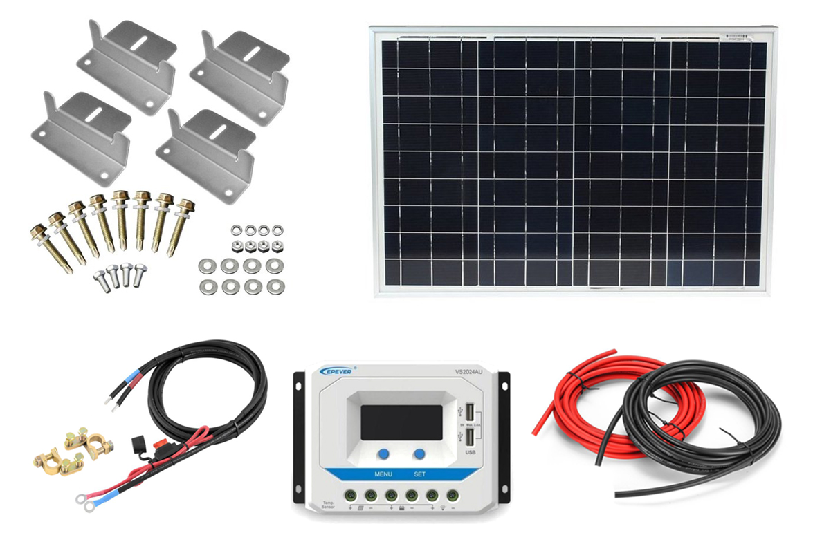 Solárna sada neobsahuje solárnu batériu a menič napätia z 12V na 230V, ten si môžete vybrať tu, alebo nás kontaktujte a s výberom Vám radi poradíme.